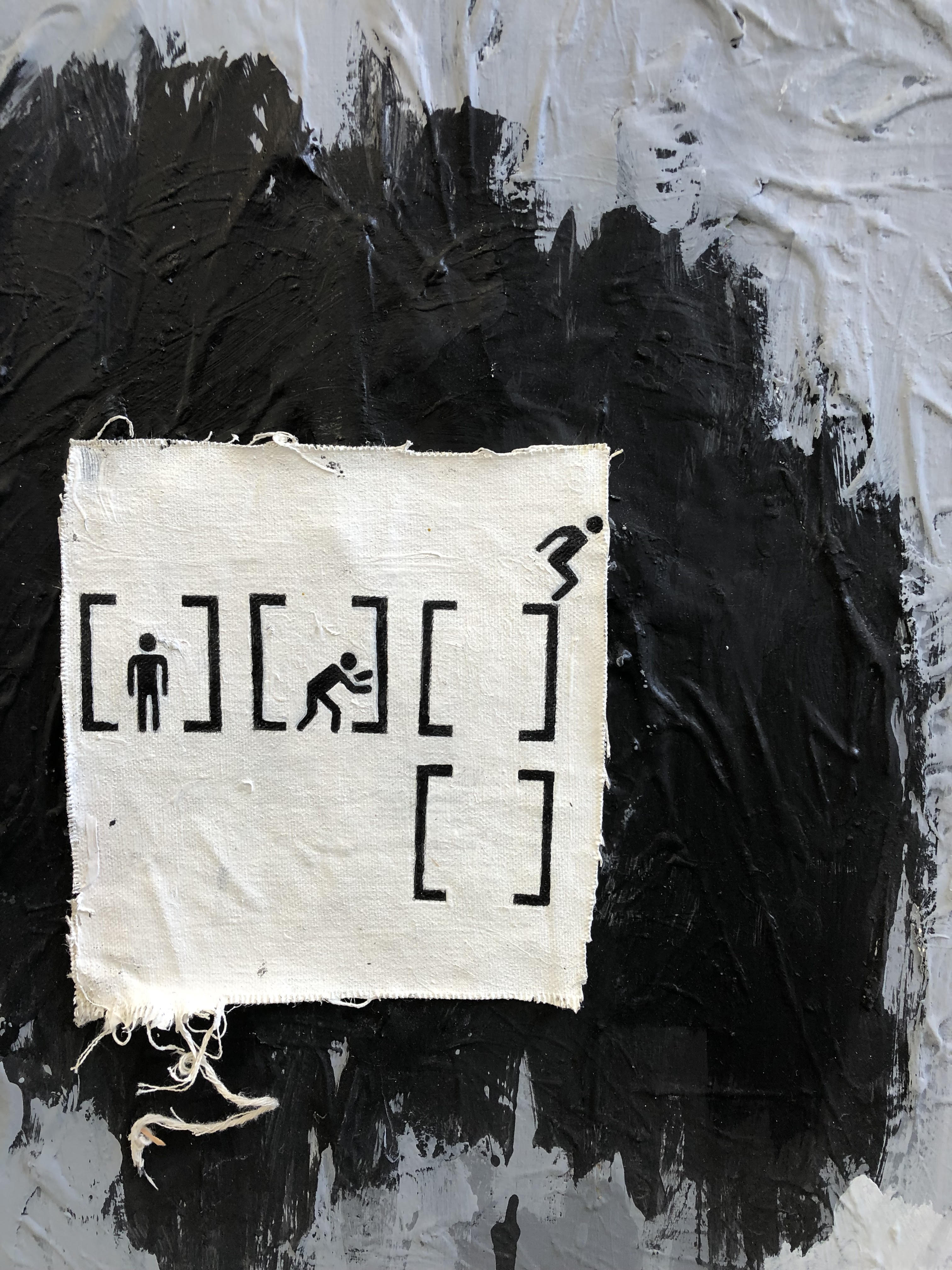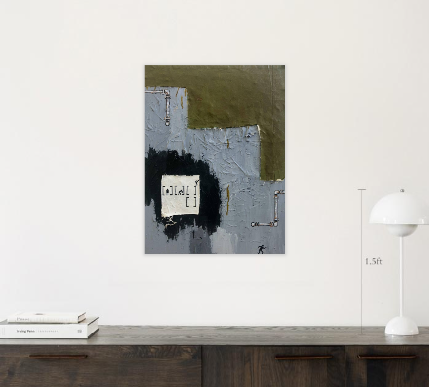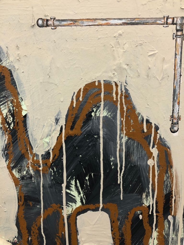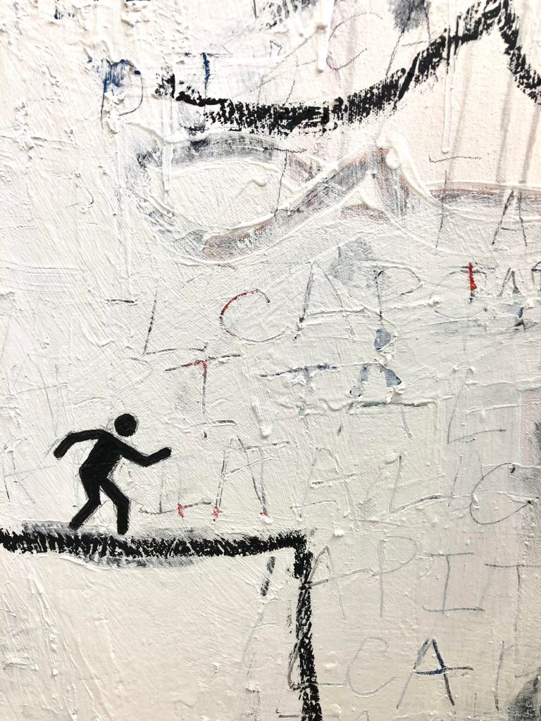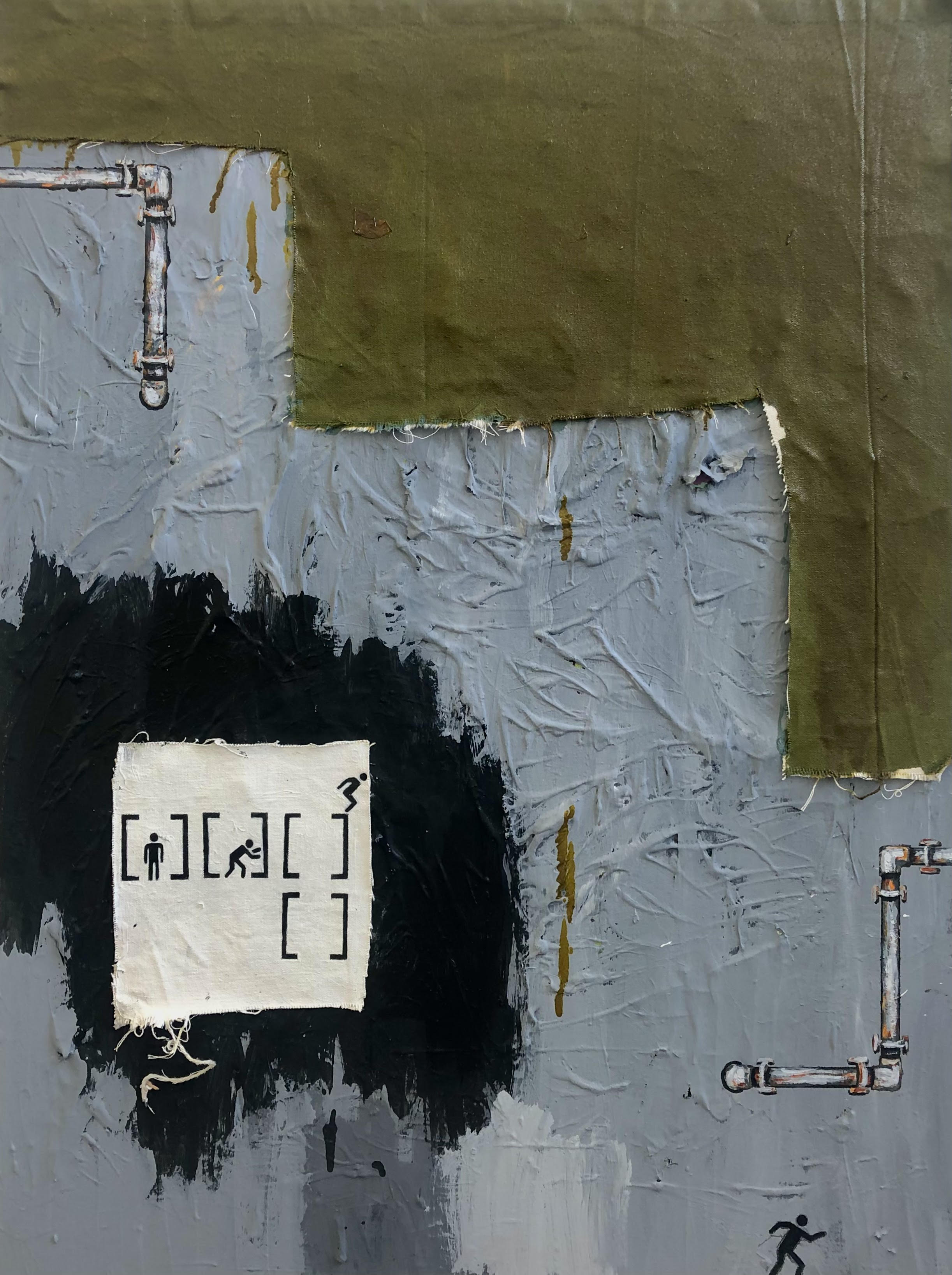 Acrylic, oil stick, and newspaper on canvas
