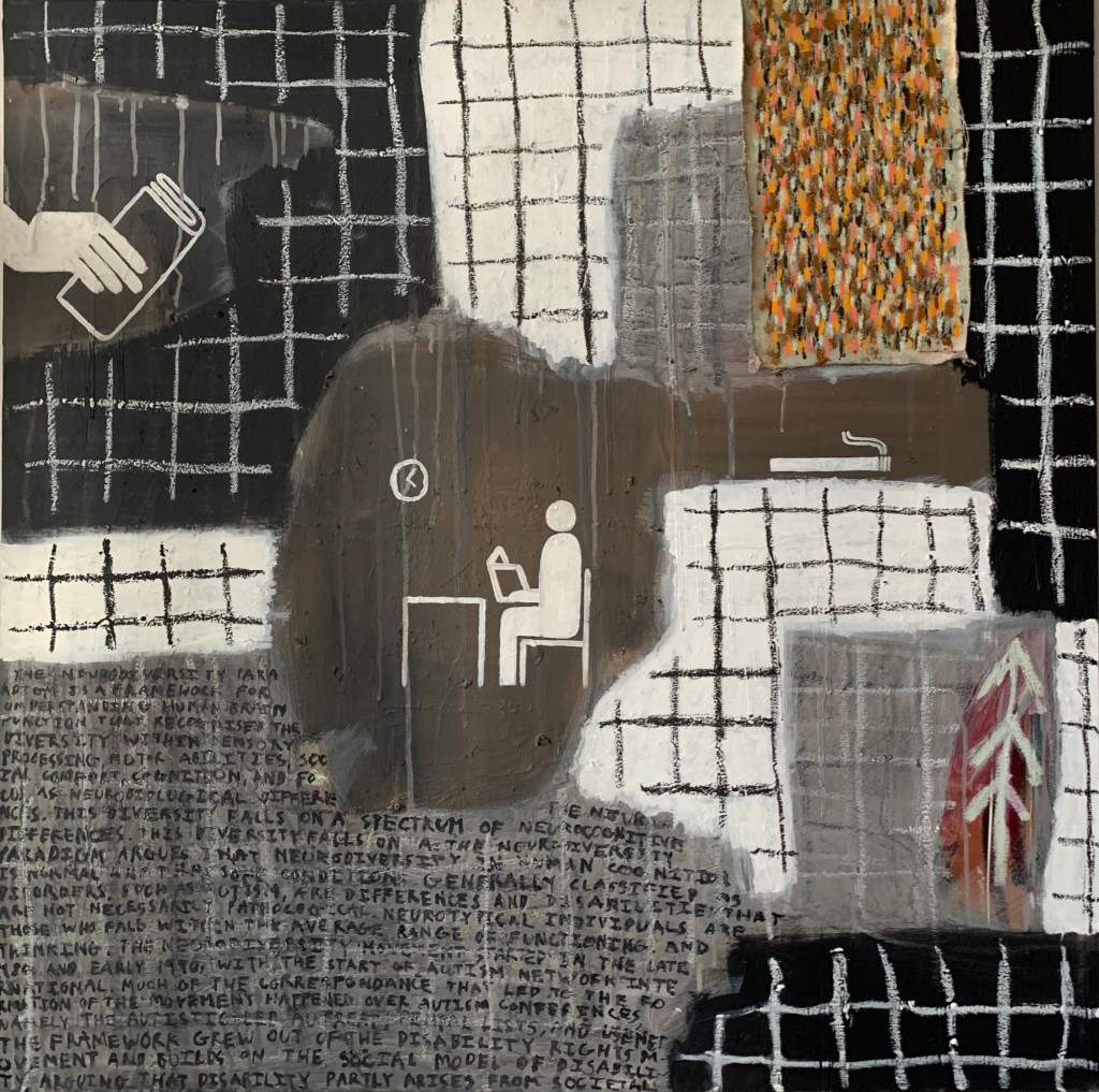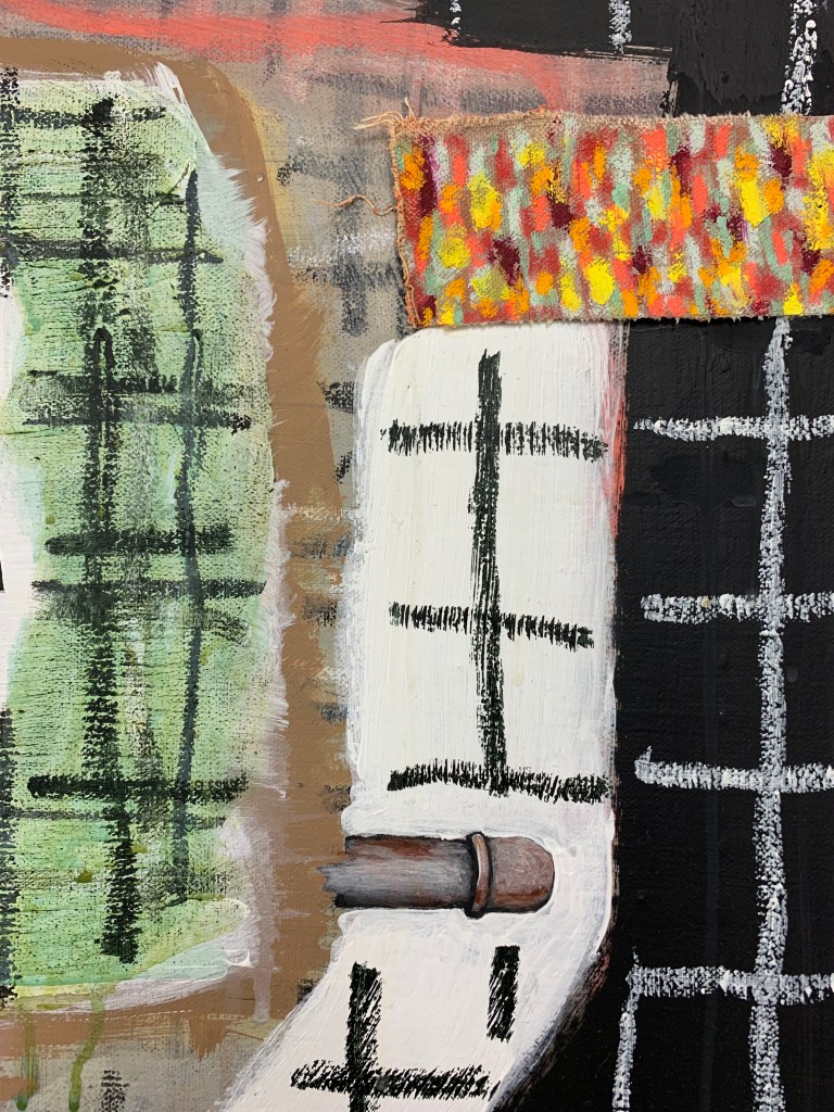 Acrylic and oil stick on wooden board
