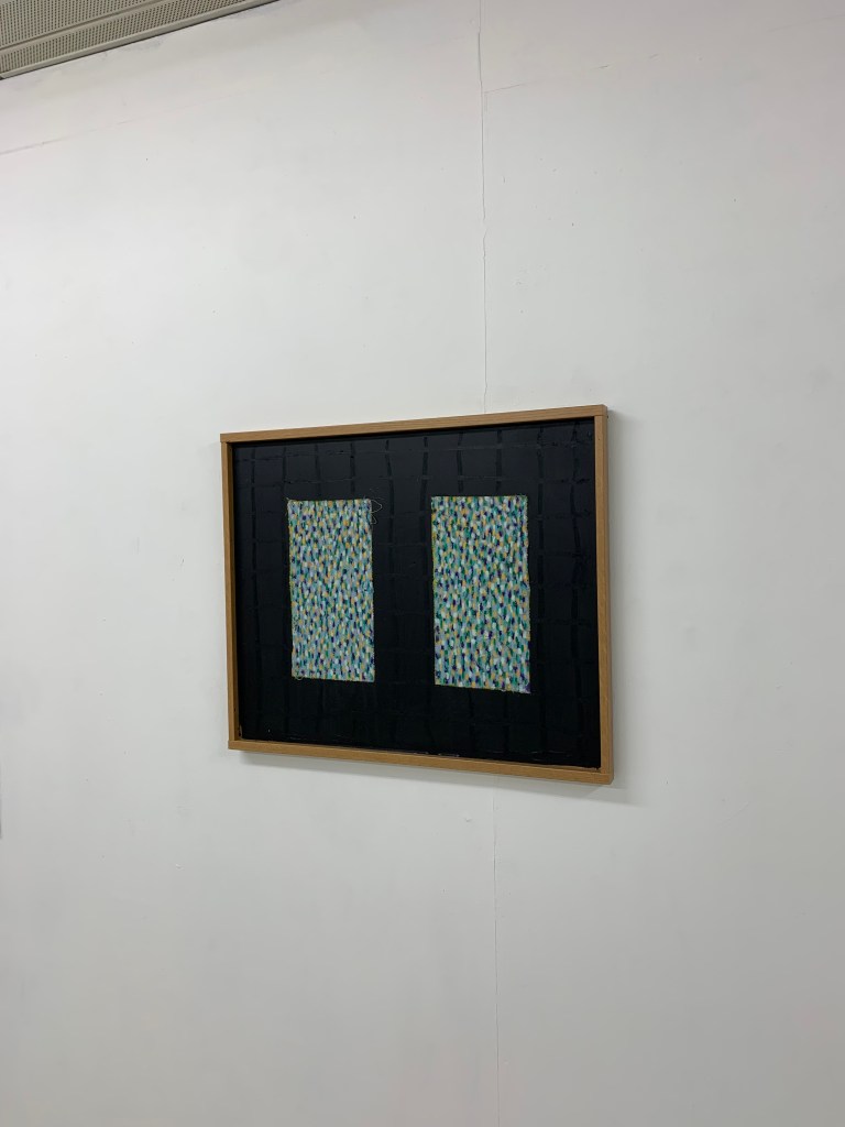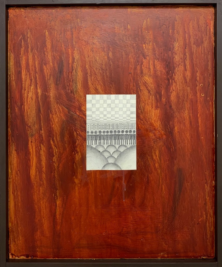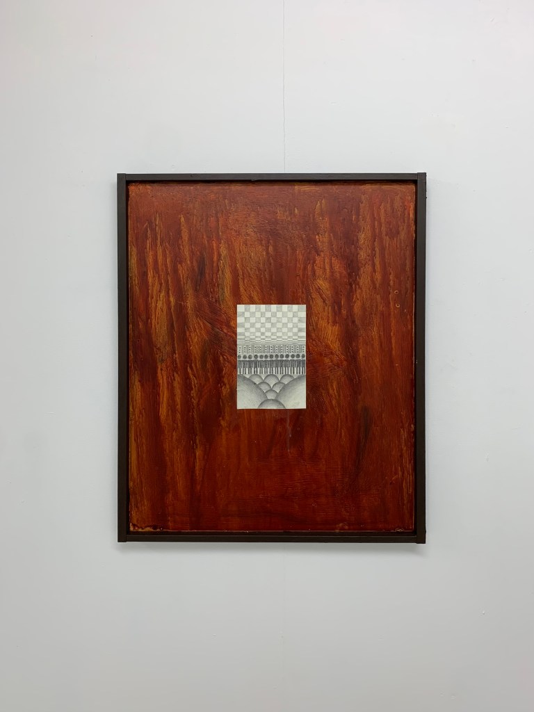 Graphite and oil on paper and wooden board